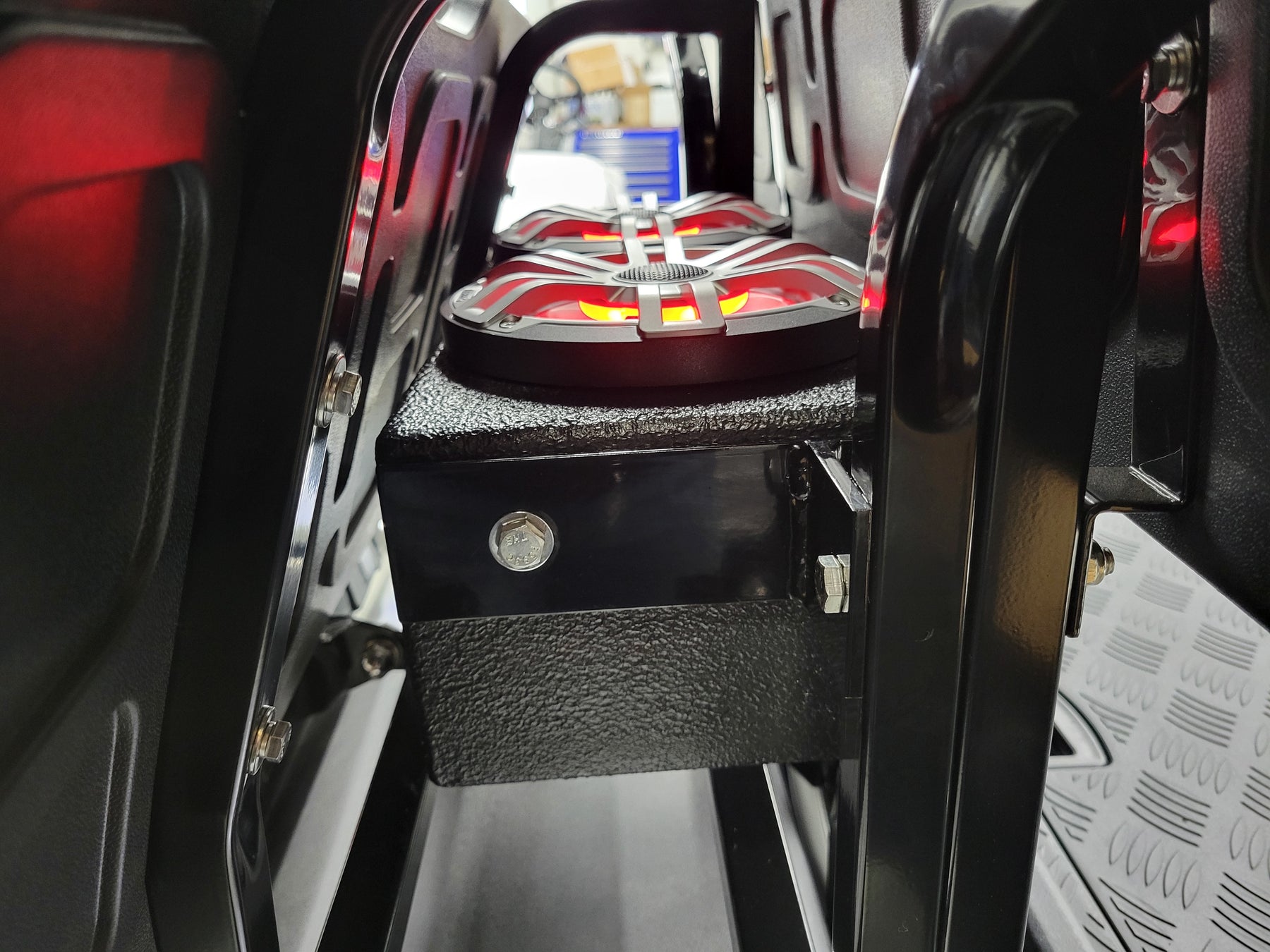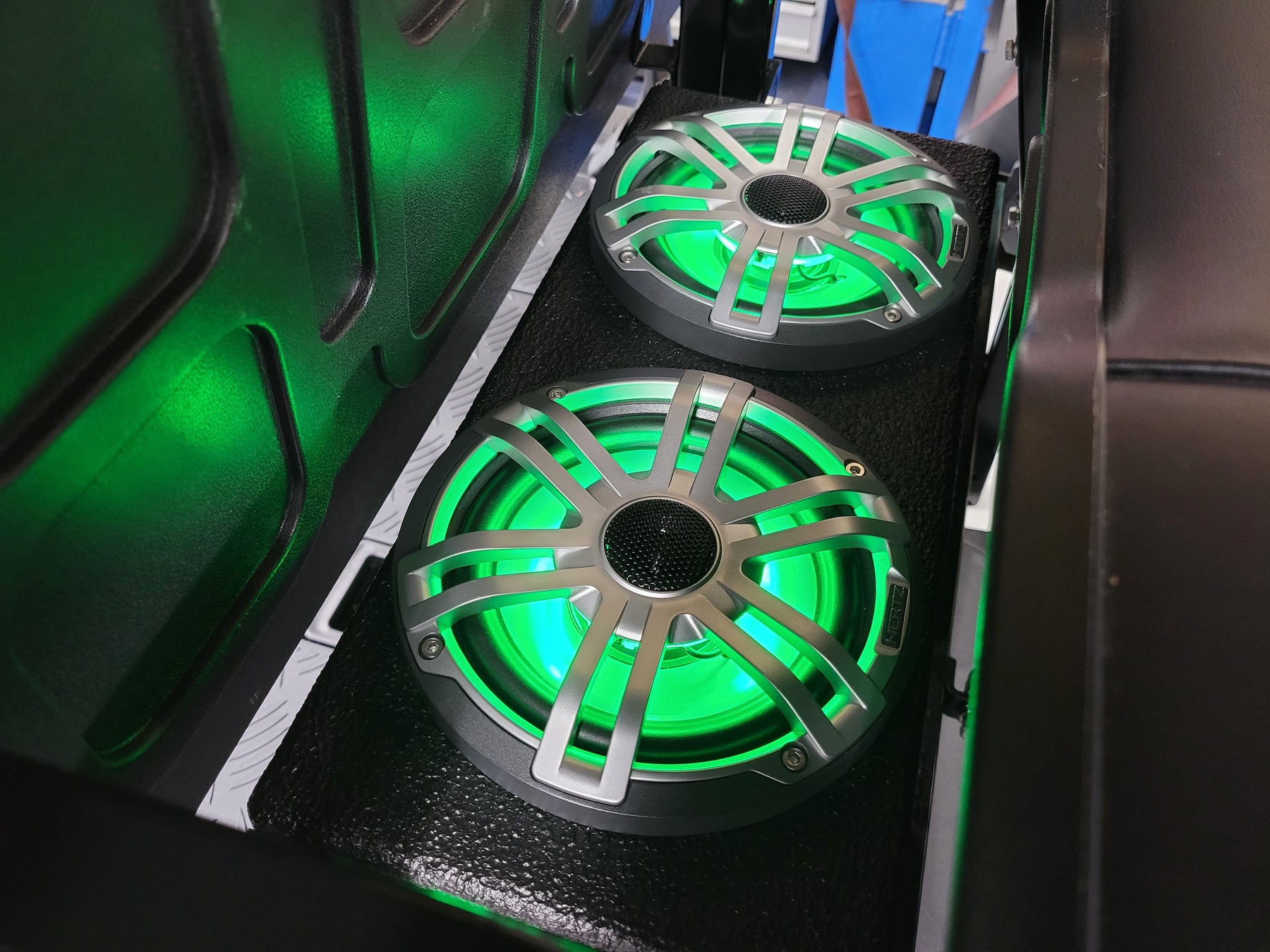 You can choose the standard GLD4 (no LEDs) or upgrade to the GLD4 LED Package, which adds LED speaker lighting and full Underglow lighting — all plug-and-play, all controlled from your phone. If you want big, clean sound and the option to turn your Evolution into a rolling light show, this is the system.