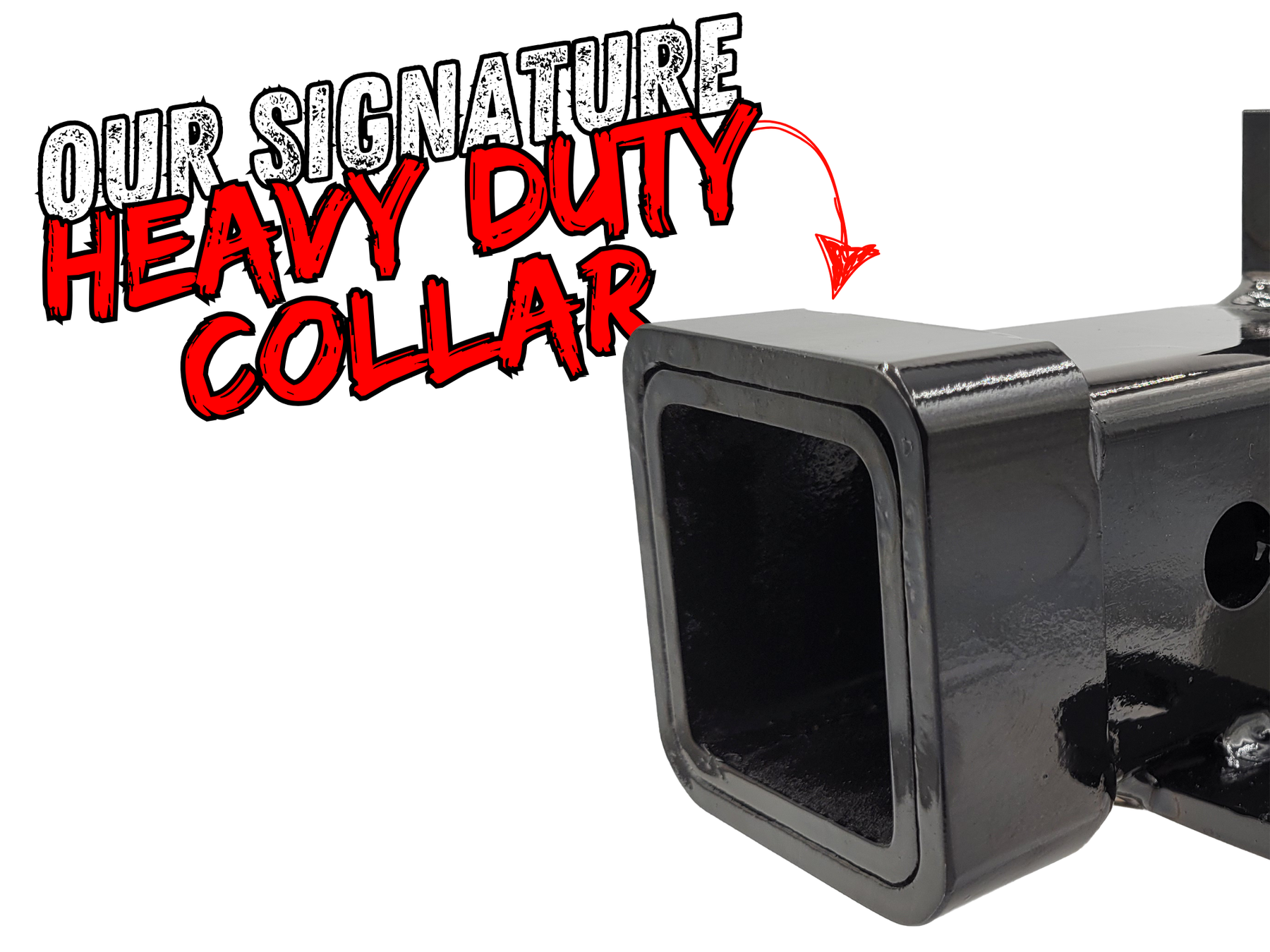 The welded HD collar prevents receiver flex and keeps hitch-mounted accessories tight and secure, even under load.