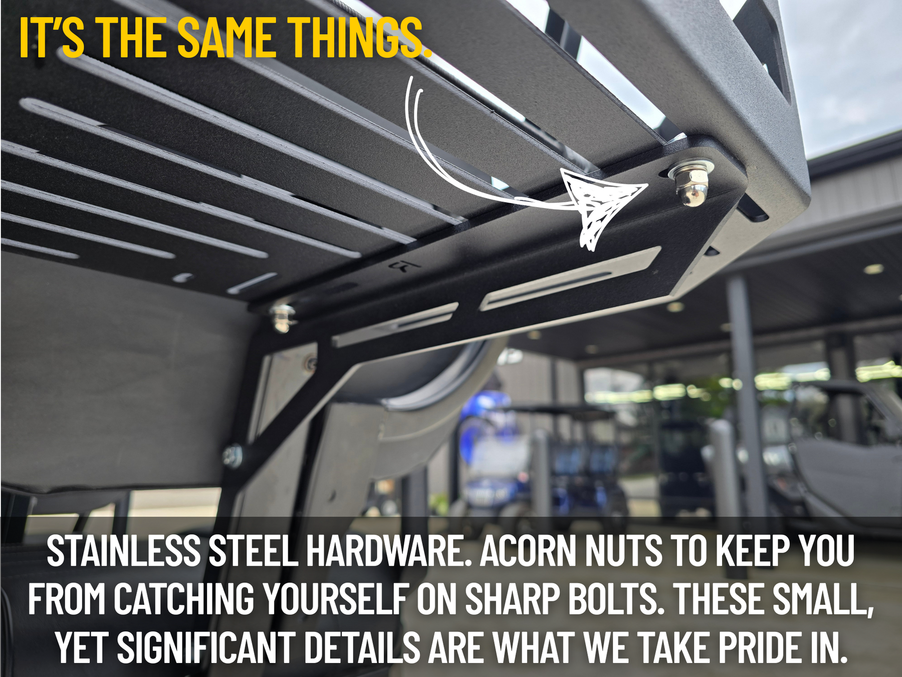 Enter the BA CartRack™. Made in Ohio from heavy-gauge American steel and engineered specifically for the Liberty, it’s not a universal basket — it’s a purpose-built system from a dealership that actually uses these carts. No shortcuts. No gimmicks. Just a rack you can beat on for years.
