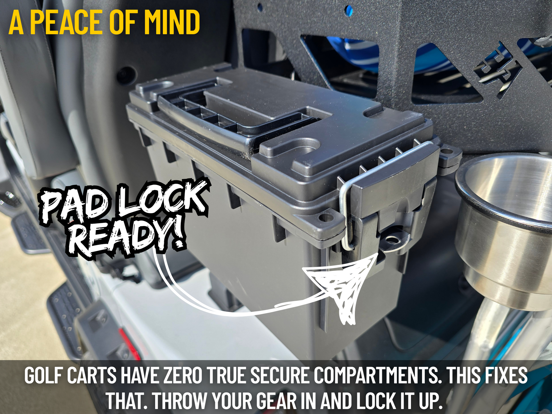 You get all five attachments: the ChairRack, Dual CupHolders, Lockable DryBox, Dual Fishing Pole Rack, and Cargo Net. Together, they turn your cart into a hauling machine that carries more gear, keeps seats clear, and keeps your stuff secure.