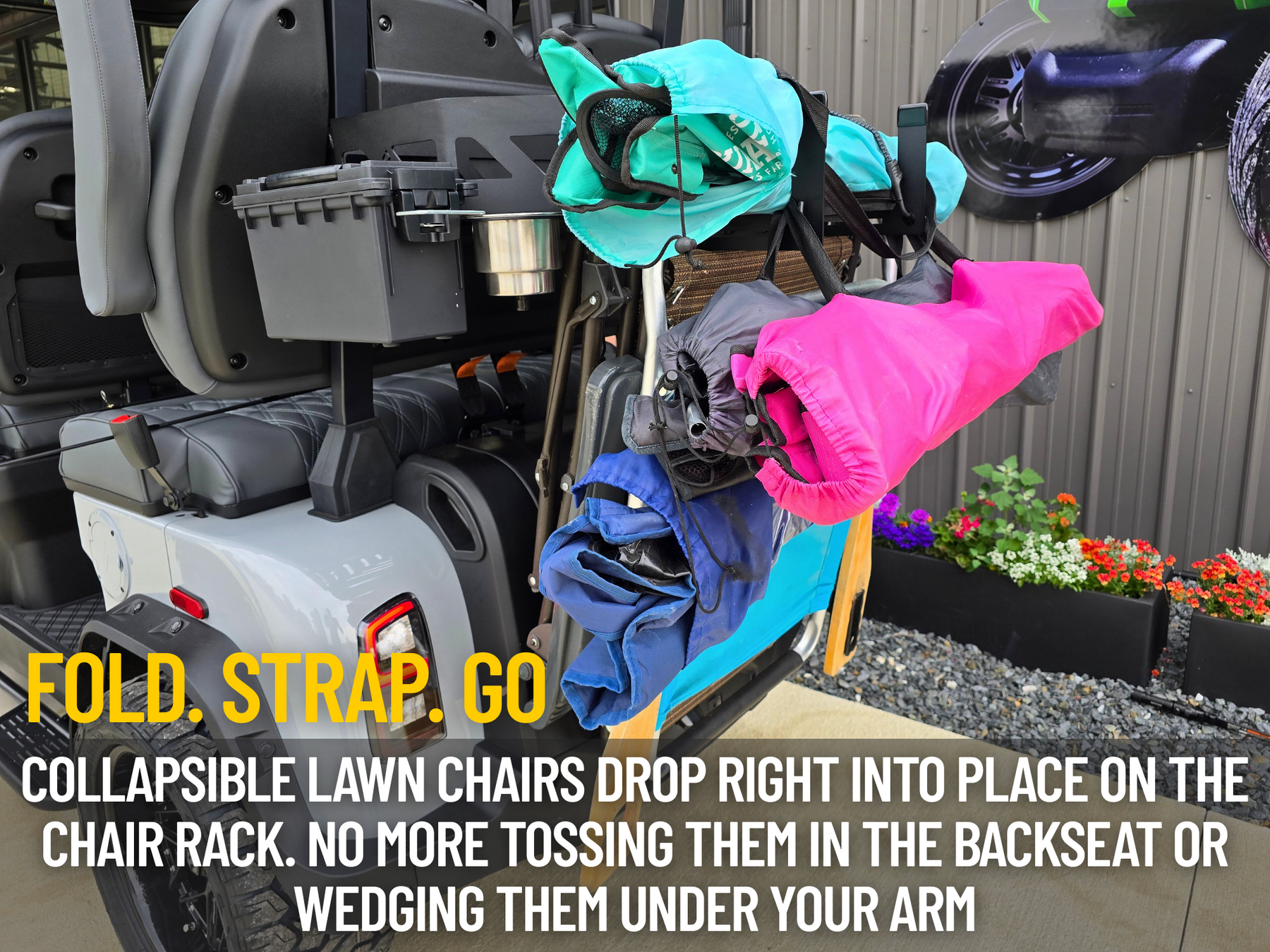 The Beacher Loadout fixes all of it. With the ChairRack, Dual CupHolders, and Cargo Net, your CartRack becomes a beach-day powerhouse—hauling everything without stealing seating or creating chaos.