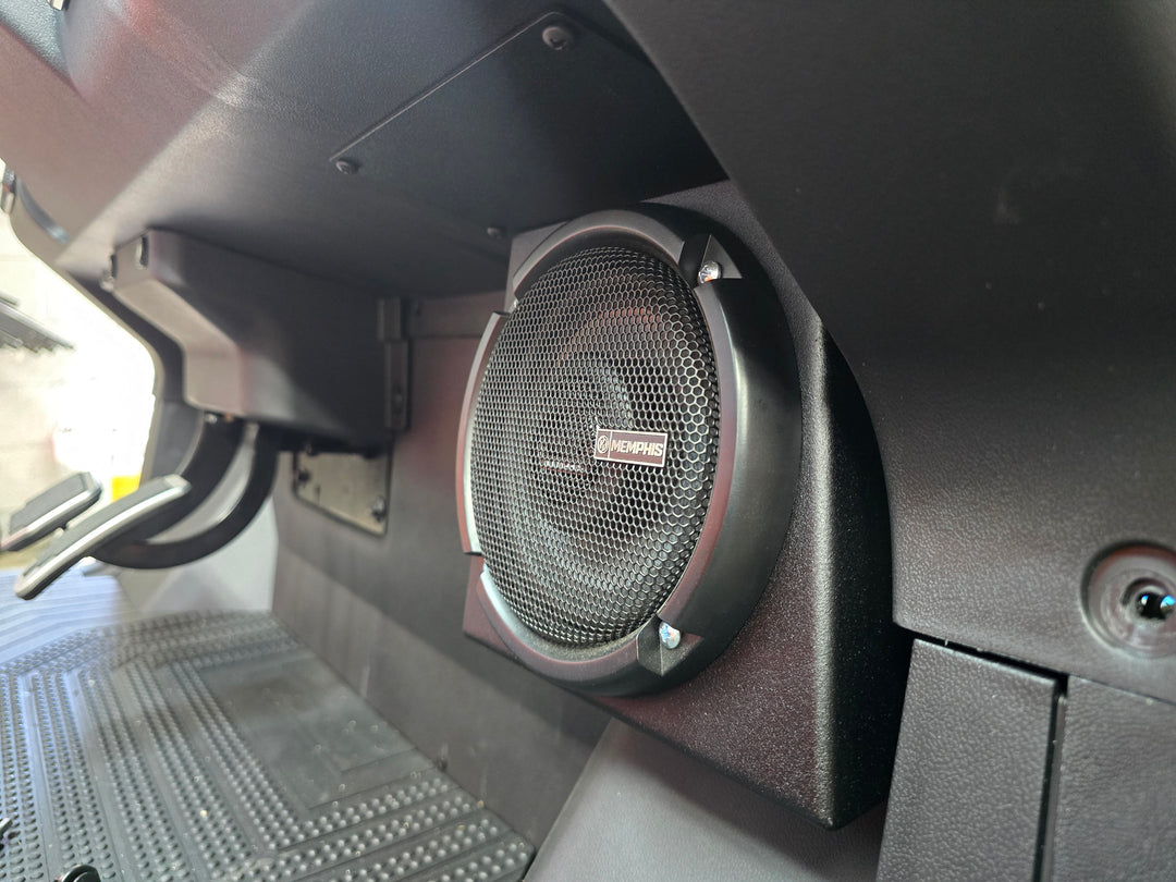 This system replaces the weak stock speakers with larger, high-performance 5” speakers housed in custom-fitted enclosures. Instead of sending sound toward your feet, these enclosures aim the audio directly at you, creating a front-row concert experience every time you drive.