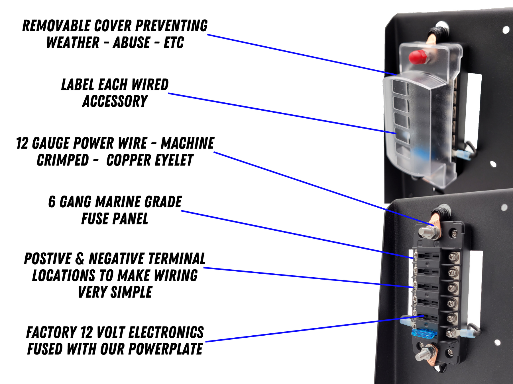 A waterproof 12-volt fuse panel, heavy-duty wiring, and clean circuit labeling make powering your accessories simple, safe, and reliable—no matter the weather or terrain.