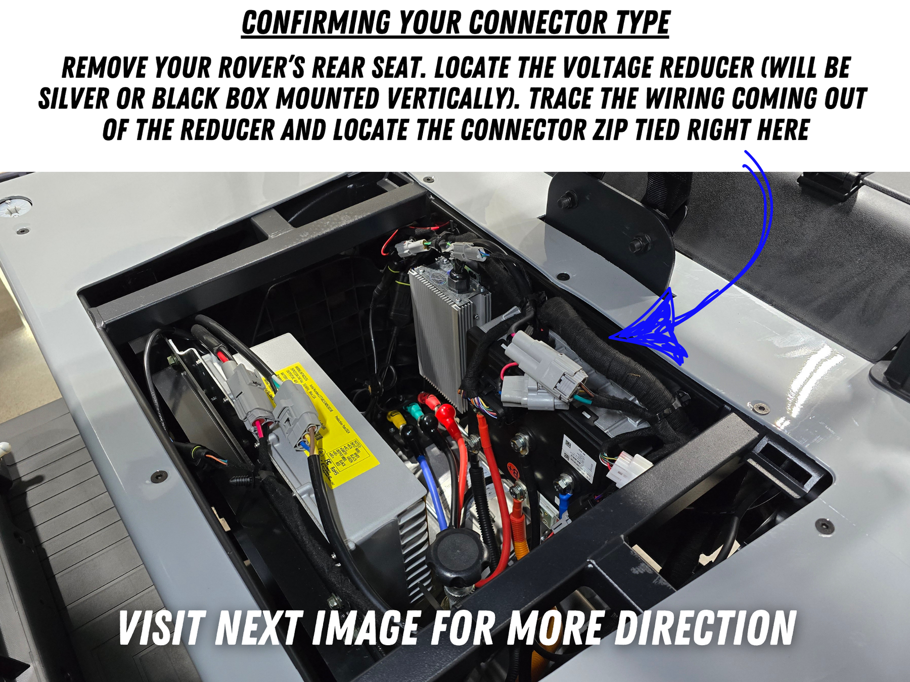 Every connector is labeled, pre-terminated, and designed to lock into the Rover’s factory harness. No splicing. No stripping wires. Just click it in and go enjoy your cart.